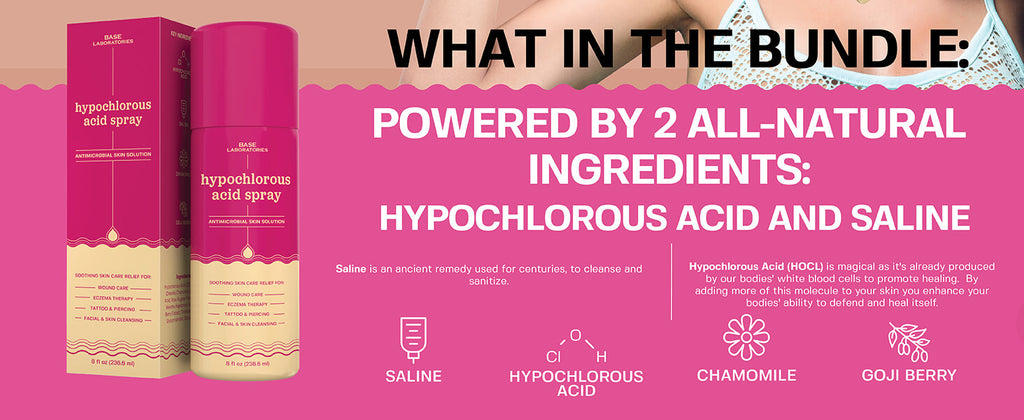 I have been dealing with my skin issues using Base Labs Hypochlorous Acid Spray and HOCL & Saline Solution Wipes. The spray has been my healing companion, and the wipes are a travel-friendly solution for piercings. The natural ingredients, including chamomile and goji berry, make them a powerhouse.