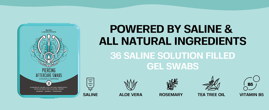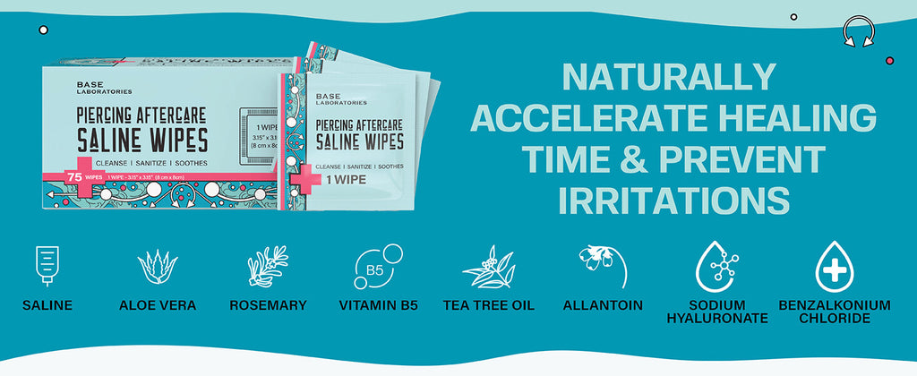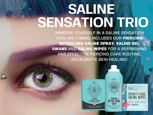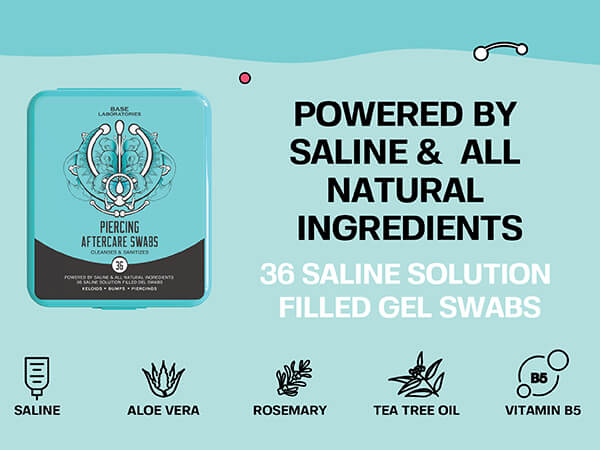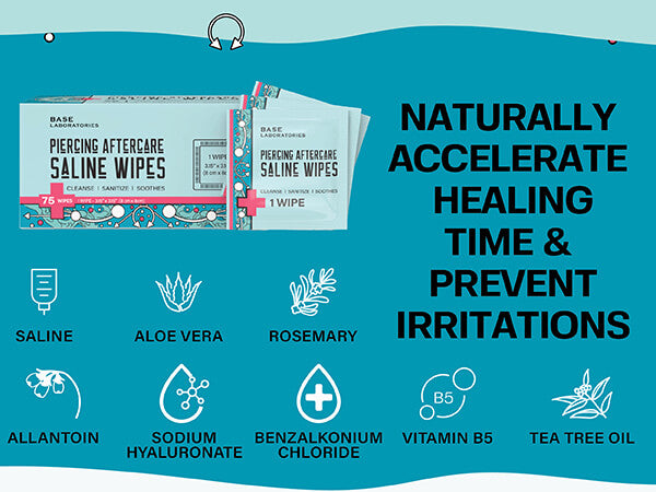 Tired of the hassle of making your own saline solution? Base Labs piercing aftercare wipes are here to make your life easier! Individually wrapped for convenience, they're your portable piercing sidekick. Tuck a few in your bag, and you're set – no more dealing with cotton swabs. Each wipe is sealed, ensuring a fresh solution every time and putting cleanliness worries to rest. Cleaning your piercing is now as easy as open-and-wipe. No infections, even with a cold – these wipes are a game-changer. And they're not just for piercings; they're perfect for cuts and bruises. Gentle and soothing, they're a must-have in your first aid kit.