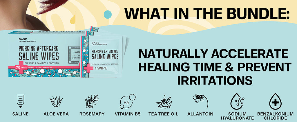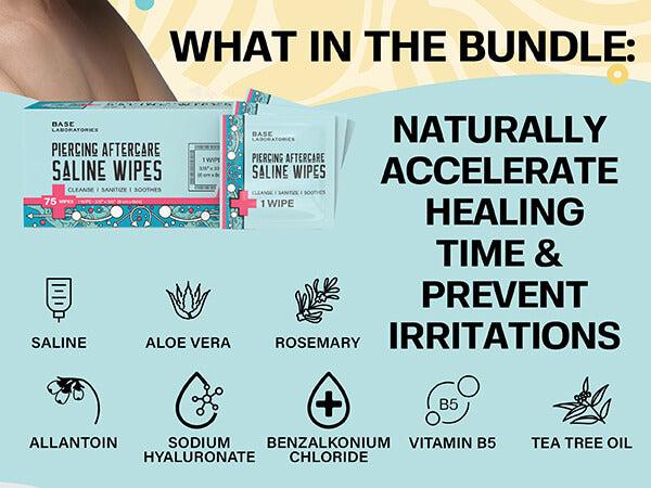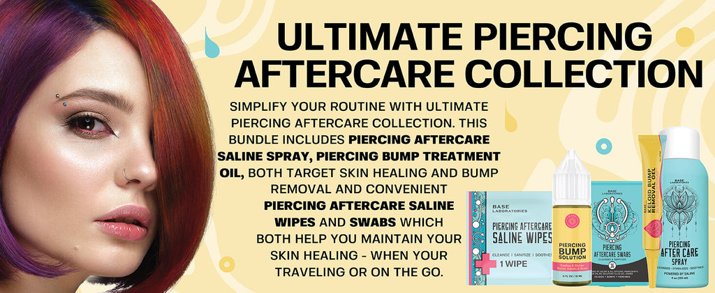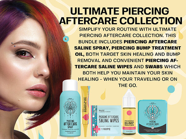 Simplify your routine with Ultimate Piercing Aftercare Collection. This bundle includes Piercing Aftercare Saline Spray, Piercing Bump Treatment Oil, both target skin healing and bump removal and convenient Piercing Aftercare Saline Wipes and Swabs which both help you maintain your skin healing - when your traveling or on the go.